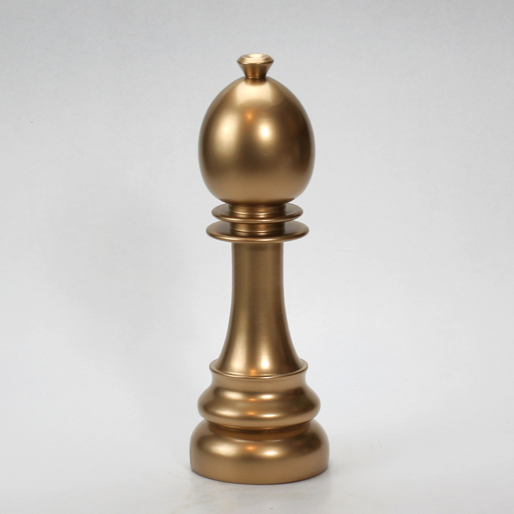 Piesă de șah – nebun – realizată din lemn de carpen, vopsita în auriu, poate fi un element decorativ pentru casa sau biroul dumneavoastră. Totodată poate fi un cadou de excepţie sau piesă de recuzită.